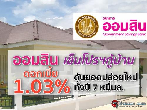 ออมสินเข็นโปรฯกู้บ้าน ดอกเบี้ย1.03% ดันยอดปล่อยใหม่ทั้งปี 7 หมื่นล.
