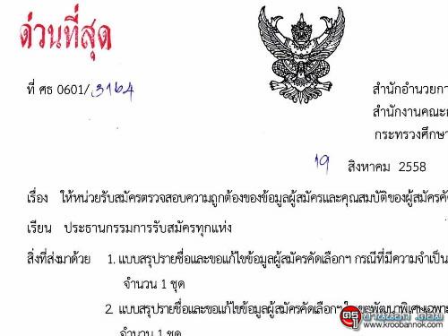 ตรวจสอบด่วน! รายชื่อผู้สมัครครูผู้ช่วย กรณีที่มีความจำเป็นหรือมีเหตุพิเศษ 1/2559 มากกว่าหนึ่งแห่ง