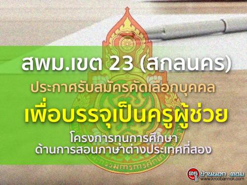 สพม.เขต 23 (สกลนคร) ประกาศรับสมัครคัดเลือกบุคคลเพื่อบรรจุเป็นครูผู้ช่วย โครงการทุนการศึกษาด้านการสอนภาษาต่างประเทศที่สอง