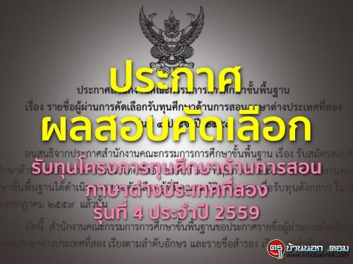 ประกาศผลสอบคัดเลือกรับทุนโครงการทุนศึกษาด้านการสอนภาษาต่างประเทศที่สอง รุ่นที่ 4 ประจำปี 2559