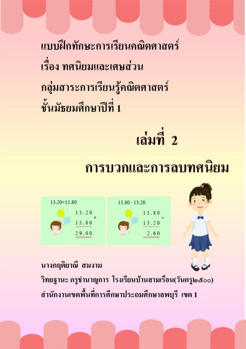 แบบฝึกทักษะการเรียนคณิตศาสตร์ เรื่อง ทศนิยมและเศษส่วน กลุ่มสาระการเรียนรู้คณิตศาสตร์ ชั้นมัธยมศึกษาปีที่ 1 ผลงานครูกฤติยาณี สมงาม