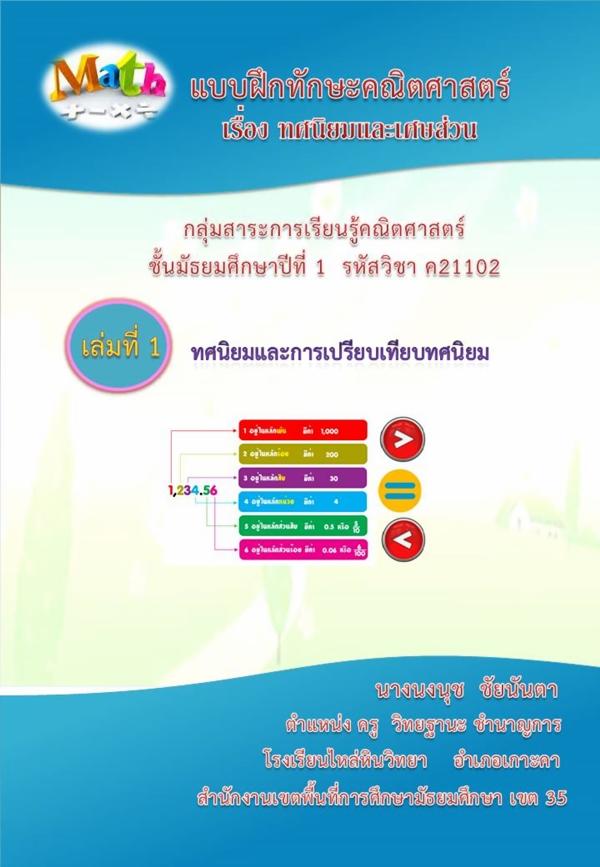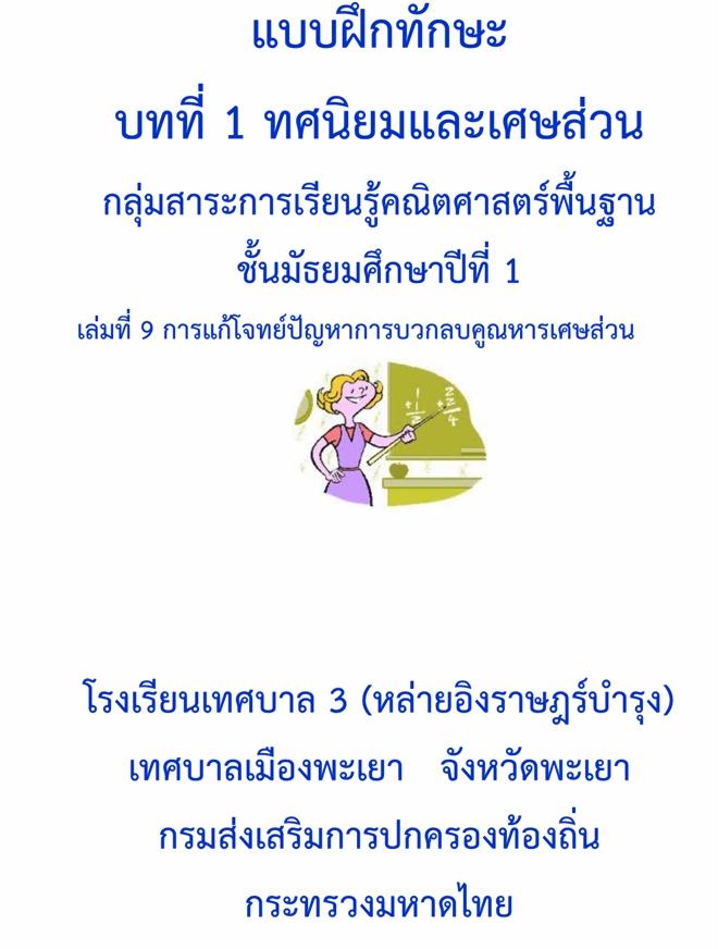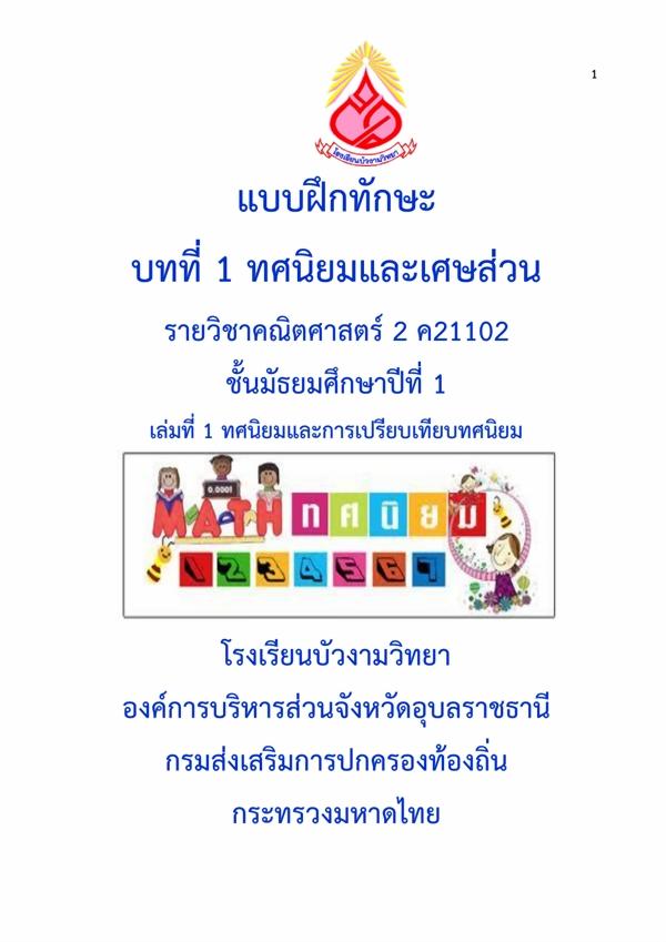 แบบฝึกทักษะคณิตศาสตร์ ม.1 ทศนิยมและเศษส่วน ผลงานครูศรีทอง ชัยชนะ