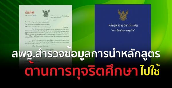 สพฐ.สำรวจข้อมูลการนำหลักสูตรต้านการทุจริตศึกษาไปใช้