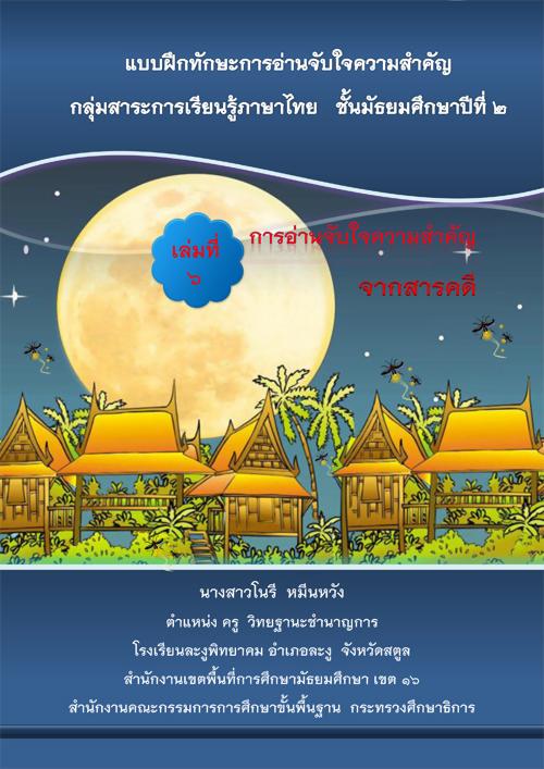 แบบฝึกทักษะการอ่านจับใจความสาคัญเพื่อพัฒนาการอ่านของนักเรียน ชั้นมัธยมศึกษา ปีที่ 2 เล่มที่ 6 การอ่านจับใจความสาคัญจากสารคดี ผลงานครูโนรี หมีนหวัง