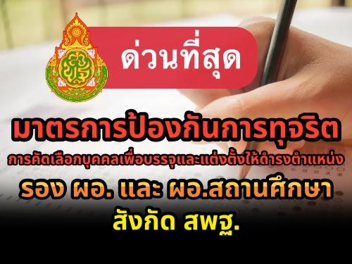 ด่วนที่สุด เรื่อง มาตรการป้องกันการทุจริตการคัดเลือกบุคคลเพื่อบรรจุและแต่งตั้งให้ดำรงตำแหน่งรองผู้อำนวยการสถานศึกษา และผู้อำนวยการสถานศึกษา สังกัด สพฐ