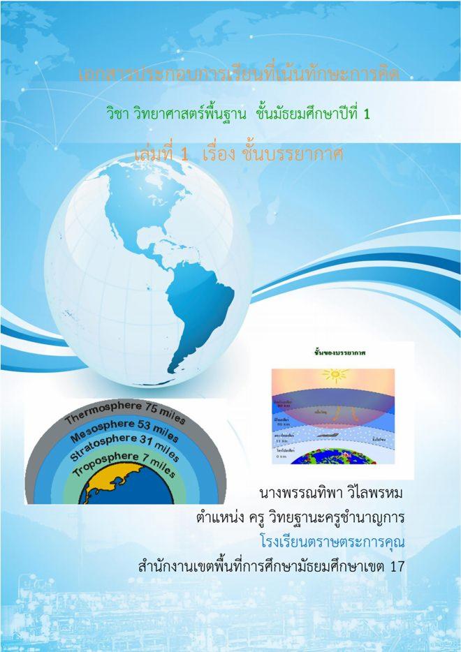 เอกสารประกอบการเรียนที่เน้นทักษะการคิด วิทยาศาสตร์ ม.1 เรื่อง ชั้นบรรยากาศ ผลงานครูพรรณทิพา วิไลพรหม