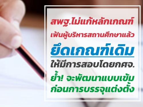 สพฐ.ไม่แก้หลักเกณฑ์เฟ้นผู้บริหารสถานศึกษาแล้ว ยึดเกณฑ์เดิมให้มีการสอบโดยกศจ. ย้ำ จะพัฒนาแบบเข้มก่อนการบรรจุแต่งตั้ง