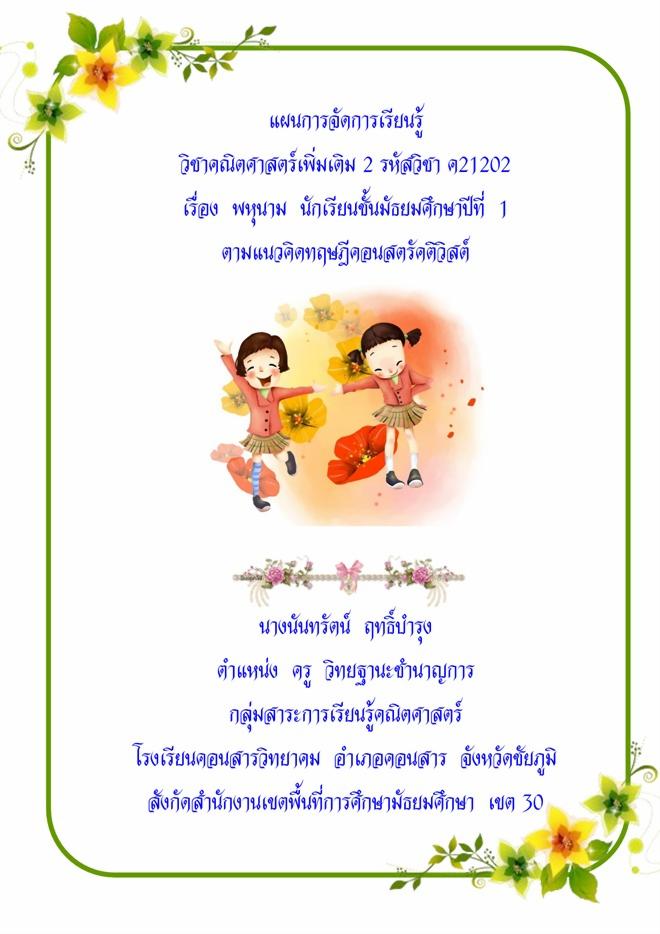 แผนการจัดการเรียนรู้ เรื่อง พหุนาม ม.1 ตามแนวคิดทฤษฎีคอนสตรัคติวิสต์ ผลงานครูนันทรัตน์ ฤทธิ์บำรุง