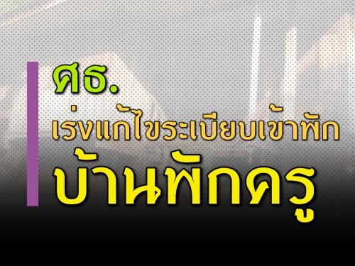 ศธ.เร่งแก้ไขระเบียบเข้าพักบ้านพักครู อ่านต่อคลิก[20 ส.ค. 2561](อ่าน 17,778 ครั้ง) (0.51%-314 ผู้โหวต) | "ดาว์พงษ์" เร่งซ่อมบ้านพักครูเสร็จปี 60 อ่านต่อคลิก[7 ก.ค. 2559](อ่าน 22,554 ครั้ง) (0.51%-314 ผู้โหวต) |
