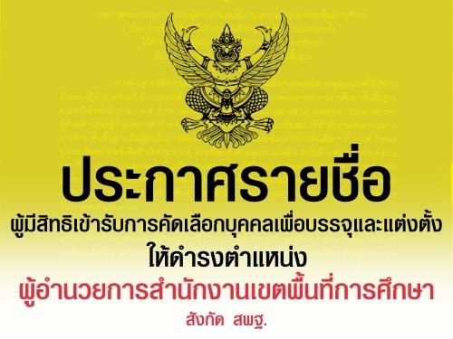 ประกาศรายชื่อผู้มีสิทธิเข้ารับการคัดเลือกบุคคลเพื่อบรรจุและแต่งตั้งให้ดำรงตำแหน่งผู้อำนวยการสำนักงานเขตพื้นที่การศึกษา สังกัด สพฐ.