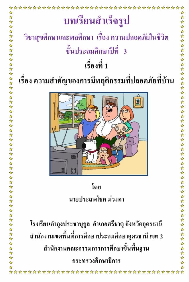 บทเรียนสำเร็จรูป เรื่อง ความปลอดภัยในชีวิต ป.3 ผลงานครูประสพโชค ม่วงทา