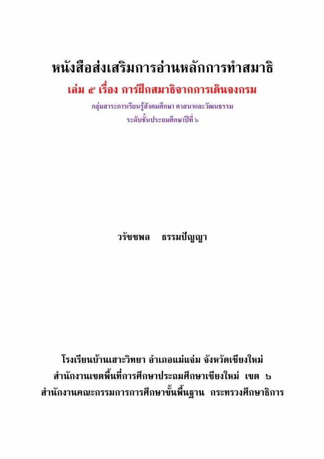หนังสือส่งเสริมการอ่านหลักการทำสมาธิ ชั้น ป.6 ผลงานครูวรัชชพล ธรรมปัญญา