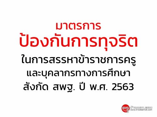 มาตรการป้องกันการทุจริตในการสรรหาข้าราชการครูและบุคลากรทางการศึกษา สังกัด สพฐ. ปี พ.ศ. 2563