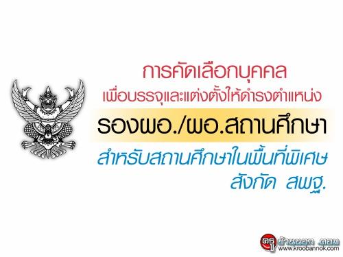 การคัดเลือกบุคคลเพื่อบรรจุและแต่งตั้งให้ดำรงตำแหน่งรองผอ.และผอ.สถานศึกษา สำหรับสถานศึกษาในพื้นที่พิเศษ สังกัด สพฐ.