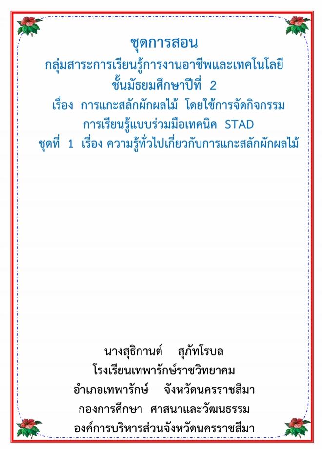 ชุดการสอน เรื่อง การแกะสลักผักผลไม้ (ม.2) ผลงานครูสุธิกานต์ สุภัทโรบล