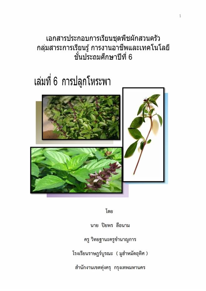 เอกสารประกอบการเรียนชั้น ป.6 ชุด พืชผักสวนครัว ผลงานครูปิยพร ลือนาม
