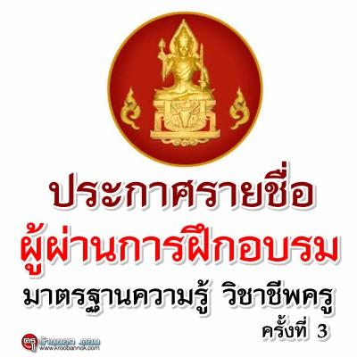 คุรุสภา ประกาศรายชื่อผู้ผ่านการฝึกอบรมมาตรฐานความรู้ วิชาชีพครู ครั้งที่ 3
