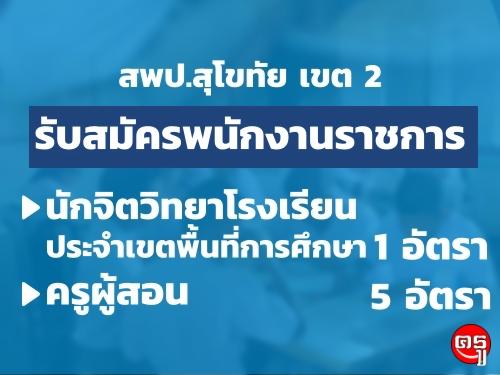 สพป.สุโขทัย เขต 2 รับสมัครพนักงานราชการ ตำแหน่งนักจิตวิทยาโรงเรียนประจำเขตพื้นที่การศึกษา 1 อัตรา และตำแหน่งครูผู้สอน 5 อัตรา