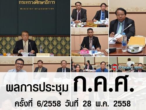 ผลการประชุม ก.ค.ศ. ครั้งที่ 6/2558 เมื่อวันที่ 28 พฤษภาคม 2558