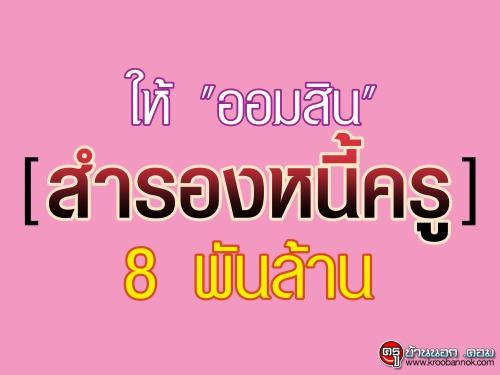 ให้ออมสินสำรองหนี้ครู8พันล้าน อ่านต่อคลิก[23 พ.ย. 2558](อ่าน 8,639 ครั้ง) (0.51%-316 ผู้โหวต) |