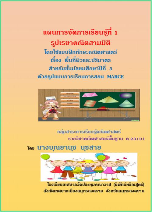 แผนการจัดกิจกรรมการเรียนรู้ คณิตศาสตร์ ม.3 พื้นที่ผิวและปริมาตร ผลงานครูศรีทอง ชัยชนะ