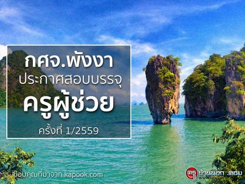 กศจ.พังงา รับสมัครสอบแข่งขันเพื่อบรรจุบุคคลเข้ารับราชการข้าราชการครูและบุคลากรทางการศึกษา ตำแหน่งครูผู้ช่วย ครั้งท่ี 1 ปี พ.ศ.2559