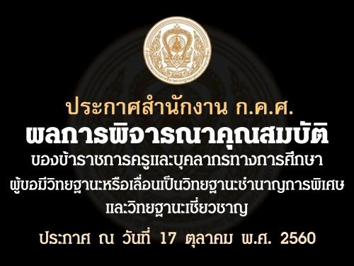 ผลการพิจารณาคุณสมบัติฯ ผู้ขอมีวิทยฐานะหรือเลื่อนเป็นวิทยฐานะชำนาญการพิเศษและวิทยฐานะเชี่ยวชาญ ประกาศ ณ วันที่ 17 ตุลาคม พ.ศ. 2560