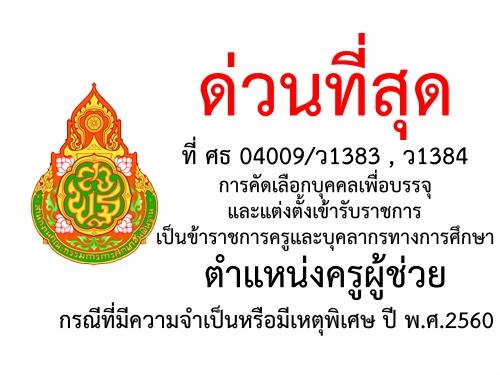 การคัดเลือกบุคคลเพื่อบรรจุและแต่งตั้งเข้ารับราชการเป็นข้าราชการครูและบุคลากรทางการศึกษา ตำแหน่งครูผู้ช่วย กรณีที่มีความจำเป็นหรือมีเหตุพิเศษปีพ.ศ.2560
