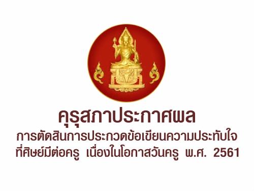 คุรุสภาประกาศผลการตัดสินการประกวดข้อเขียนความประทับใจที่ศิษย์มีต่อครู เนื่องในโอกาสวันครู พ.ศ. 2561