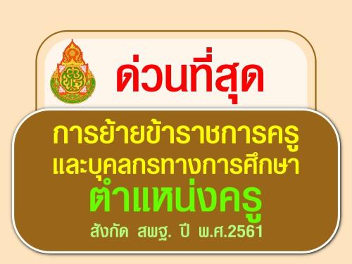 การย้ายข้าราชการครูและบุคลกรทางการศึกษา ตำแหน่งครู สังกัด สพฐ. ปี พ.ศ.2561