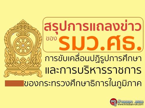 สรุปการแถลงข่าวการขับเคลื่อนปฏิรูปการศึกษาและการบริหารราชการ ของกระทรวงศึกษาธิการในภูมิภาค