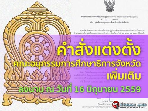 คำสั่งแต่งตั้งคณะอนุกรรมการศึกษาธิการจังหวัดเพิ่มเติม ลงนาม ณ วันที่ 16 มิถุนายน 2559