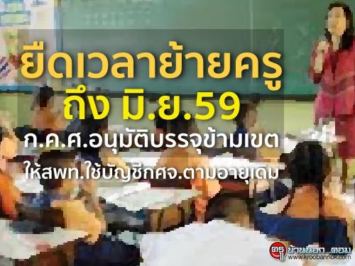 ยืดเวลาย้ายครูถึงมิ.ย.59 ก.ค.ศ.อนุมัติบรรจุข้ามเขต ให้สพท.ใช้บัญชีกศจ.ตามอายุเดิม