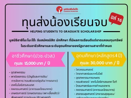 มูลนิธิอายิโนะโมะโต๊ะ เปิดรับสมัครนิสิต นักศึกษา ที่มีผลการเรียนดีแต่ขาดแคลนทุนทรัพย์ เข้าร่วมโครงการ "ทุนส่งน้องเรียนจบ" ปีที่ 17