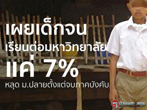 เผยเด็กจนเรียนต่อมหาวิทยาลัยแค่ 7% หลุด ม.ปลายตั้งแต่จบภาคบังคับ