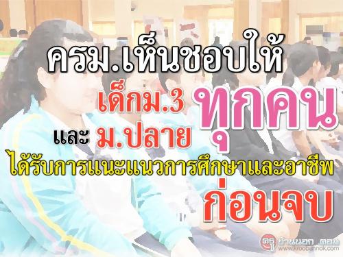 ครม.เห็นชอบให้เด็กม.3 และ ม.ปลาย ทุกคนได้รับการแนะแนวการศึกษาและอาชีพก่อนจบ