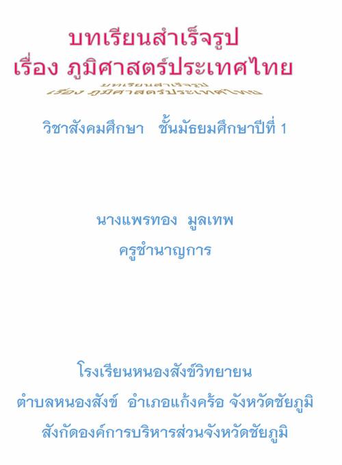 บทเรียนสำเร็จรูป เรื่อง ภูมิศาสตร์ประเทศไทย ชั้น ม.1 ผลงานครูแพรทอง มูลเทพ