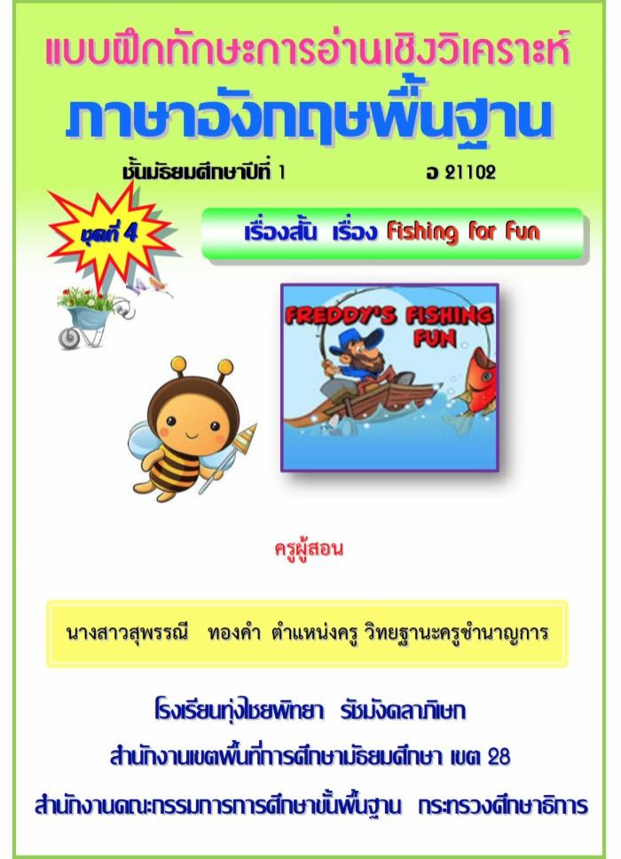 แบบฝึกทักษะการอ่านเชิงวิเคราะห์ วิชาภาษาอังกฤษพื้นฐาน ม.1 ผลงานครูสุพรรณี ทองคำ
