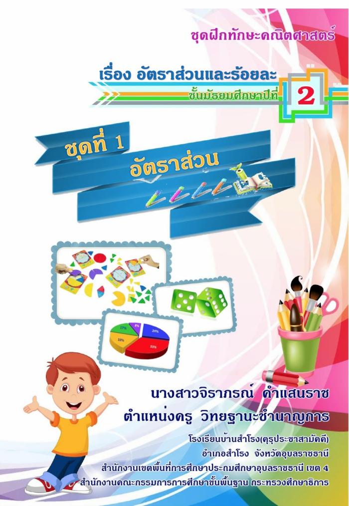 ชุดฝึกทักษะคณิตศาสตร์ เรื่อง อัตราส่วนและร้อยละ ม.2 ผลงานครูจิราภรณ์ คำแสนราช