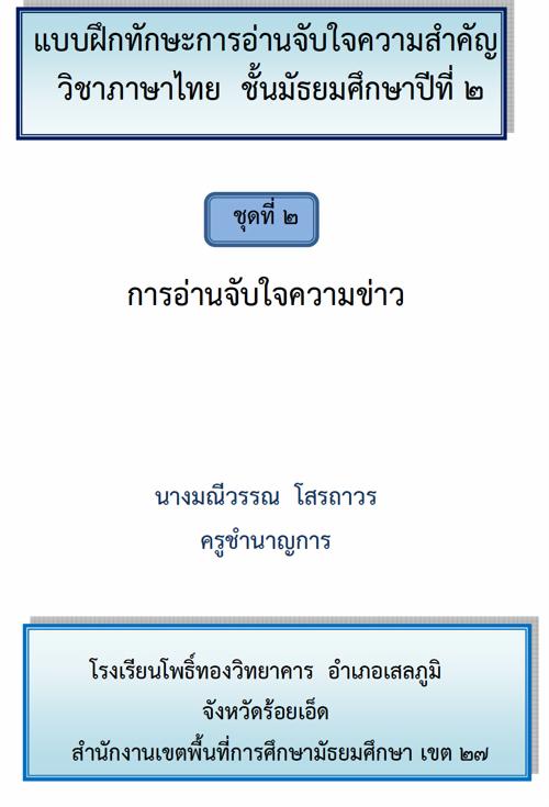 แบบฝึกทักษะการอ่านจับใจความข่าว วิชาภาษาไทย ม.2 ผลงานครูมณีวรรณ โสรถาวร