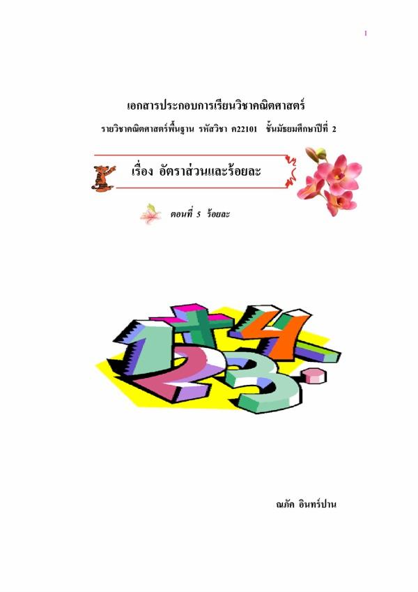 เอกสารประกอบการเรียนวิชาคณิตศาสตร์ ม.2 เรื่อง อัตราส่วนและร้อยละ ผลงานครูณภัค อินทร์ปาน