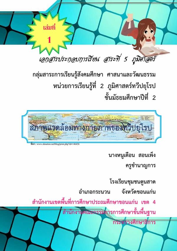 เอกสารประกอบการเรียน ภูมิศาสตร์ทวีปยุโรป ชั้น ม.2 ผลงานครูหนูเตือน สอนเพ็ง