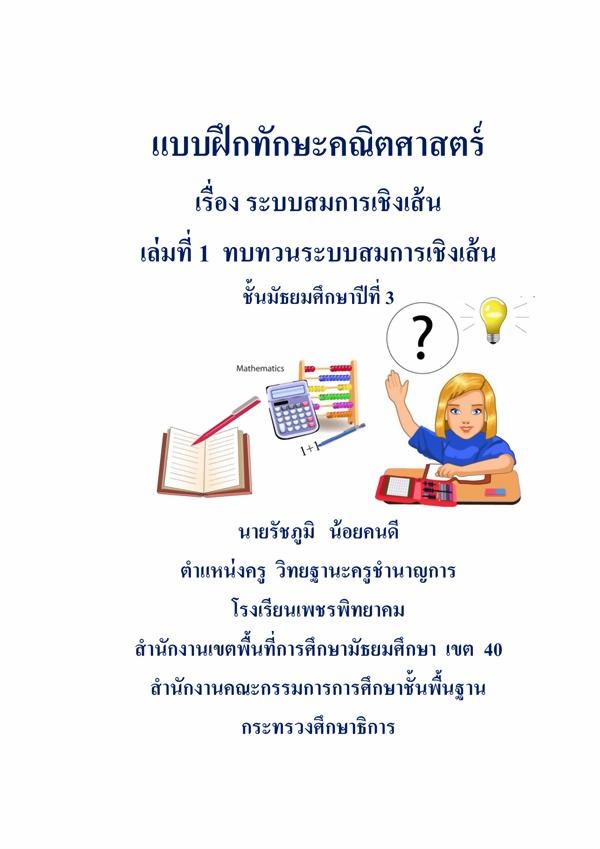 แบบฝึกทักษะคณิตศาสตร์ ม.3 เรื่อง ระบบสมการเชิงเส้น ผลงานครูรัชภูมิ น้อยคนดี