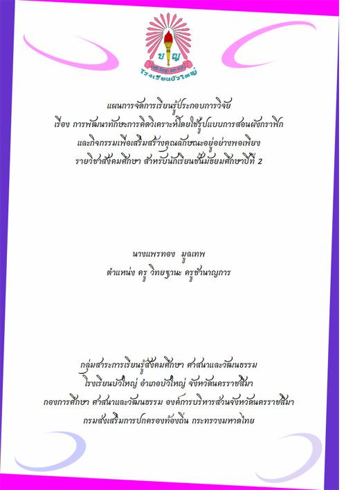 แผนการจัดการเรียนรู้ประกอบการวิจัย การพัฒนาทักษะการคิดวิเคราะห์โดยใช้รูปแบบการสอนผังกราฟิกฯ ผลงานครูแพรทอง มูลเทพ