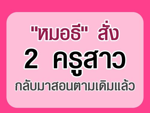 "หมอธี"สั่ง 2 ครูสาวกลับมาสอนตามเดิมแล้ว