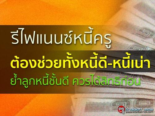 รีไฟแนนซ์หนี้ครู ต้องช่วยทั้งหนี้ดี-หนี้เน่า ย้ำลูกหนี้ชั้นดี ควรได้สิทธิก่อน