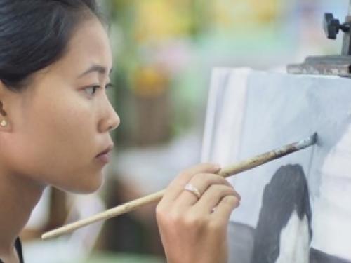 จิตอาสานร.สตรีระนอง วาดภาพพระราชกรณียกิจในหลวงร.9