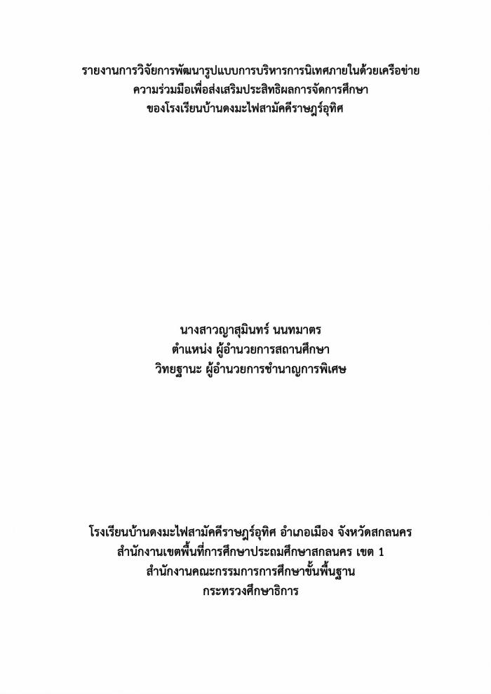 รายงานการวิจัยการพฒันารูปแบบการบริหารการนิเทศภายในด้วยเครือข่าย ความร่วมมือเพื่อส่งเสริมประสิทธิผลการจดัการศึกษา โรงเรียนบ้านดงมะไฟสามัคคีราษฎร์อุทิศ