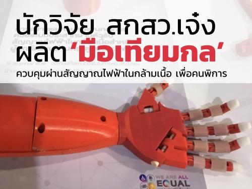 นักวิจัย สกสว.เจ๋ง ผลิต ‘มือเทียมกล’ ควบคุมผ่านสัญญาณไฟฟ้าในกล้ามเนื้อ เพื่อคนพิการ
