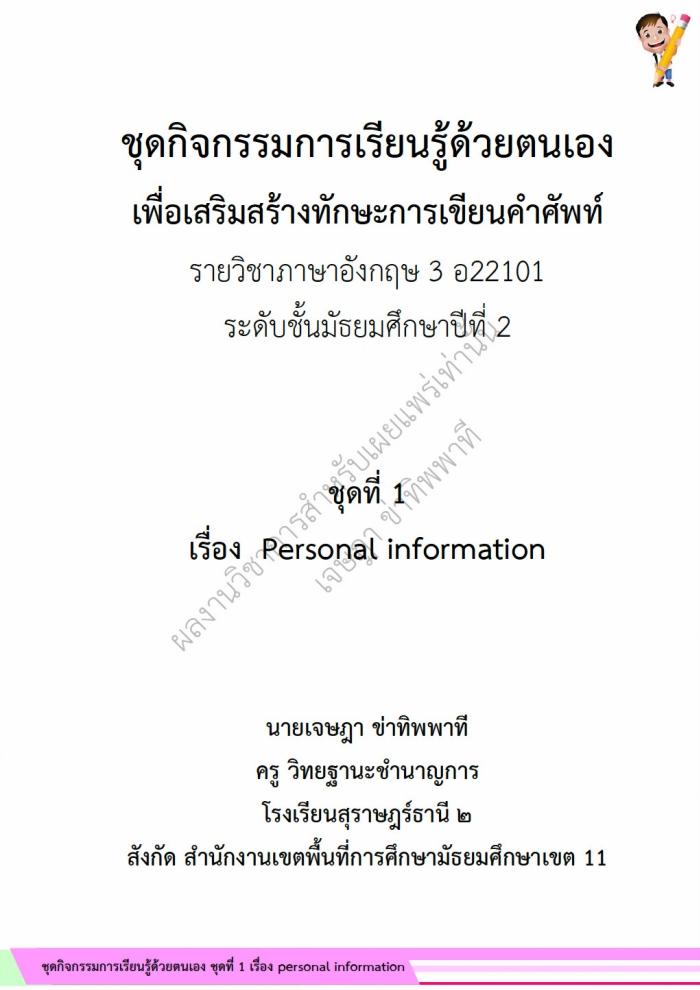 ชุดกิจกรรมการเรียนรู้ด้วยตนเอง เพื่อเสริมสร้างทักษะการเขียนคำศัพท์ วิชาภาษาอังกฤษ 3 สำหรับนักเรียนระดับชั้นมัธยมศึกษาปีที่ 2 ผลงานครูเจษฎา ข่าทิพพาที